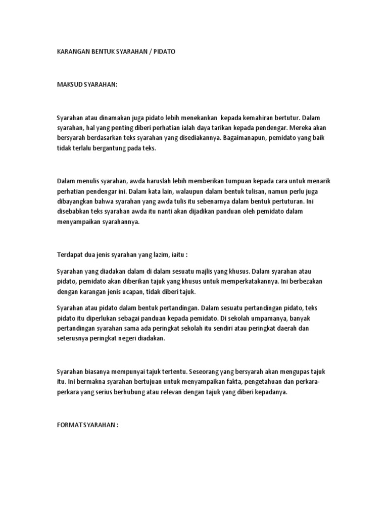 Contoh Menulis Karangan Syarahan